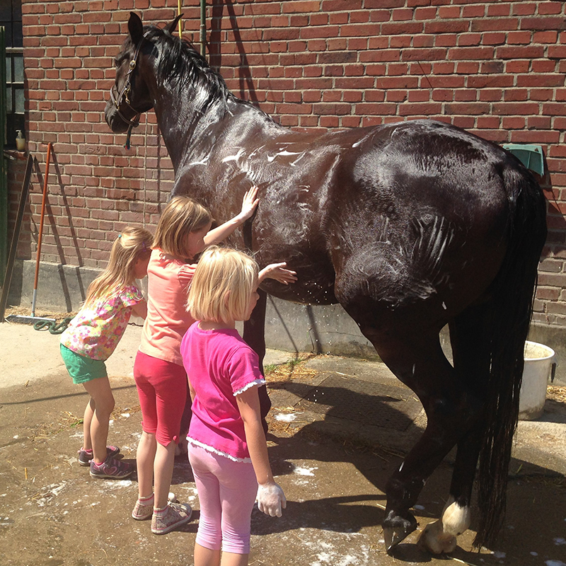 Neben der körperlichen Entwicklung der Kinder, steht auch der artgerechte Umgang mit dem Partner Pferd im Vordergrund. Die Kinder lernen in der Vor- und Nachbereitung des Pferdes, seine Bedürfnisse und Versorgung kennen.